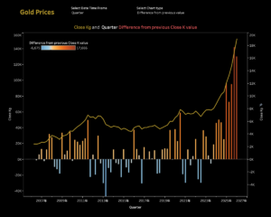 - 動的な期間比較: 棒グラフのバーをクリックして「比較対象年」をパラメーターに渡し、前年比チャートをリアルタイムで切り替える